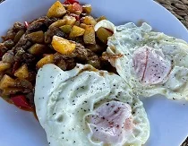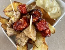 | Mini Spiral Potatoes with Romesco | Fried Eggs with Mallorcan Frit | QK-Style Spicy Potatoes |