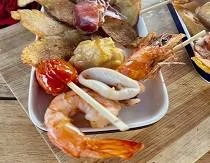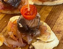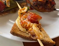 | Caramelized Squid Montadito | Shrimp and Squid Skewer | Salmon and Cherry Tomato Montadito |