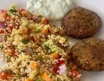 | Couscous with Falafel and Tzatziki | Fried Eggplant with Burrata | Roasted Vegetables (Escalivada) |