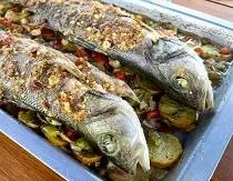 | Baked Sea Bass | Little Tuna and Shrimp Marmitako | Grilled Red Mullet |