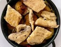 | Costa Brava Eggplants | Stuffed Squid with Meat | Sailor-Style Chicken |